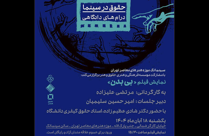 به گزارش خبرگزاری خبرآنلاین به نقل از موزه هنرهای معاصر تهران، سینماتک موزه هنرهای معاصر تهران با همکاری مؤسسه فرهنگی و هنری «حقوق و هنر»، در ادامه برنامههای تخصصی خود، این هفته میزبان نمایش و بررسی فیلم «بی بدن» به کارگردانی مرتضی علیزاده است.