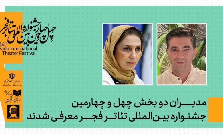 به گزارش خبرگزاری خبرآنلاین به نقل از روابطعمومی ادارهکل هنرهای نمایشی، سیدوحید فخر موسوی، دبیر چهلوچهارمین جشنواره بینالمللی تئاتر فجر، طی احکامی، مریم کاظمی را به عنوان مدیر بخش تئاتر خیابانی و امین رهبر را به عنوان مدیر بخش رادیوتئاتر این رویداد هنری منصوب کرد.